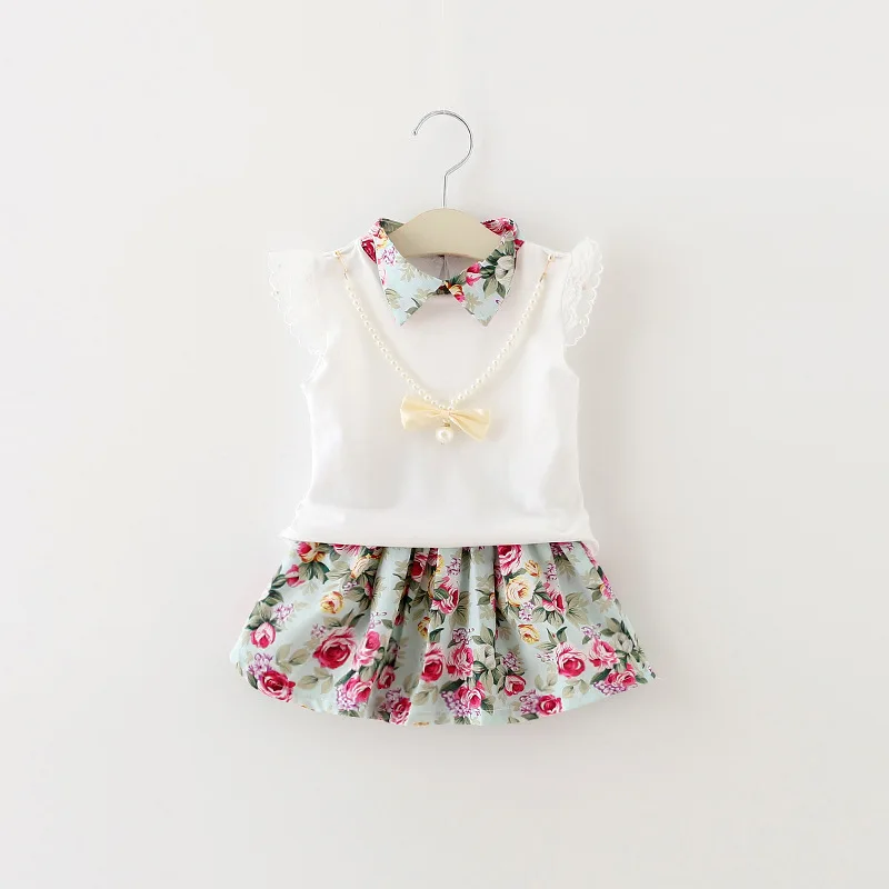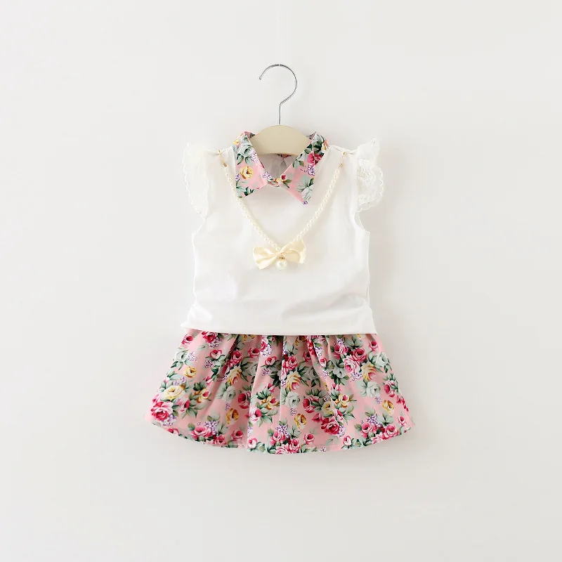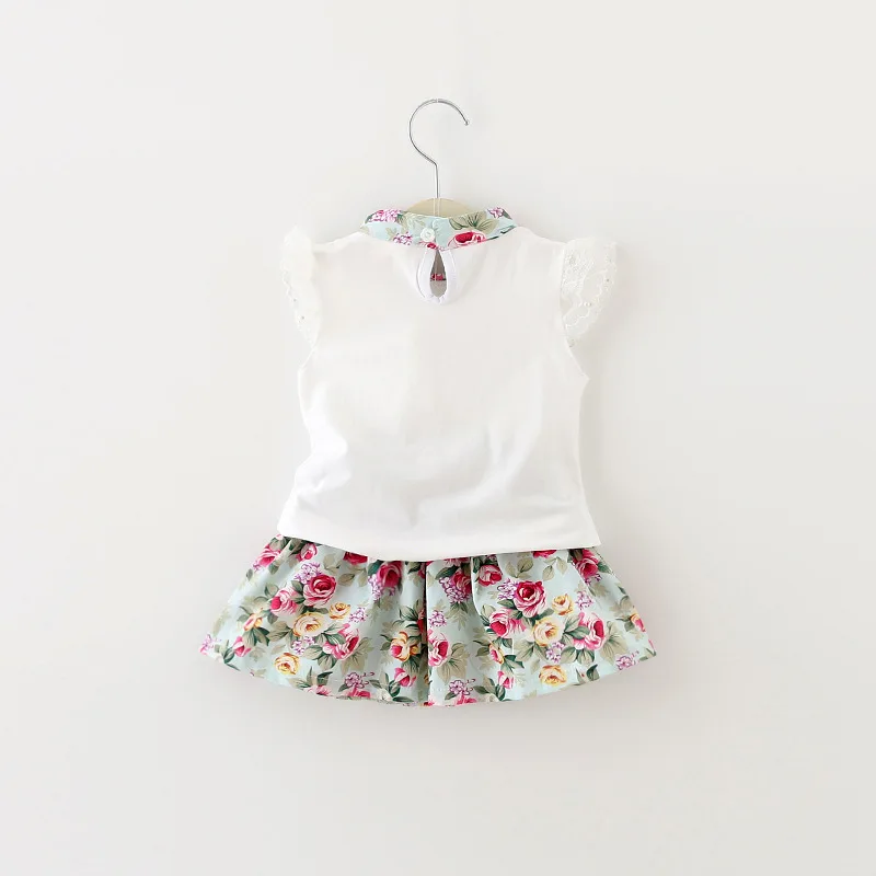2016 Hot Sale Summer Style Baby Girls Clothing Set Cartoon Sleeveless T-shirt+Skirt 2pcs/set Baby G