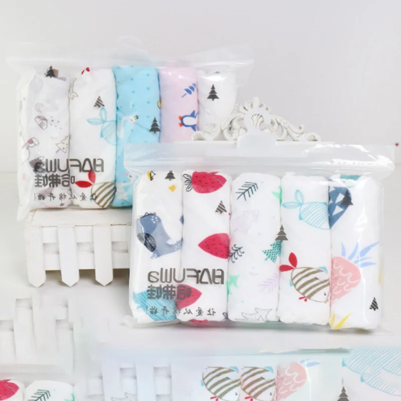 5 Pcs/Lot Newborn Boys Muslin Gauze Girls Stuff Hand Face Wipes Cloth Cute Cartoon Baby Towels Kids