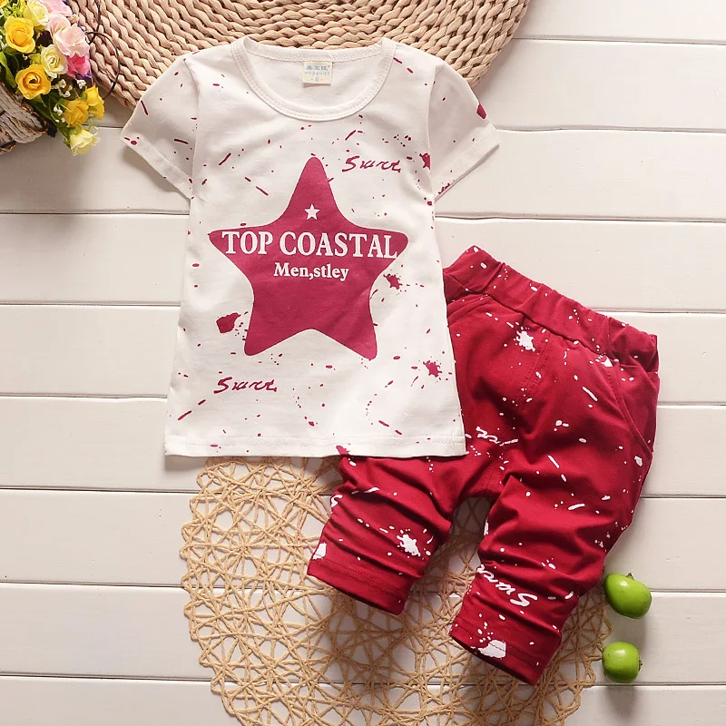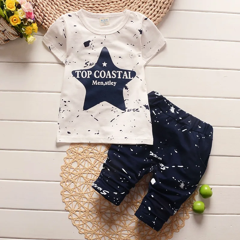Baby Boy Clothes 2017 Brand Summer Kids Clothes Sets T-shirt+pants Suit Clothing Set Star Printed C