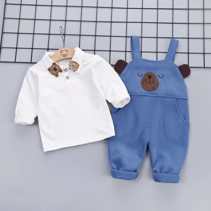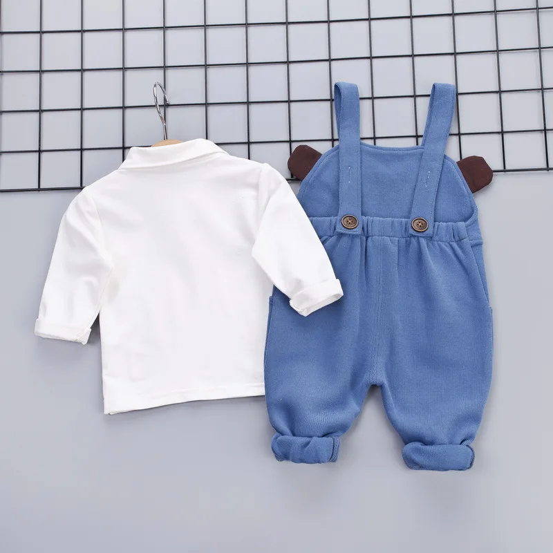 Spring Autumn Boys Girls Casual Clothes 2 Piece Sets Cute Cartoon Overalls+Long Sleeve Shirts Newbo