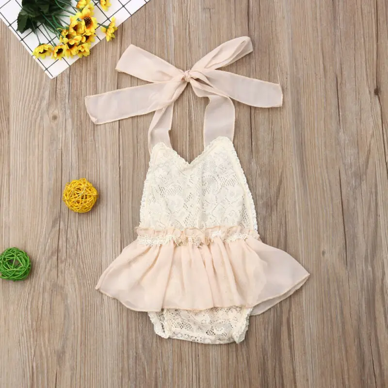 Summer Newborn Baby Girl Clothes Cute Lace Romper Sleeveless Halter Jumpsuit Outfit Sunsuit Kids Cl