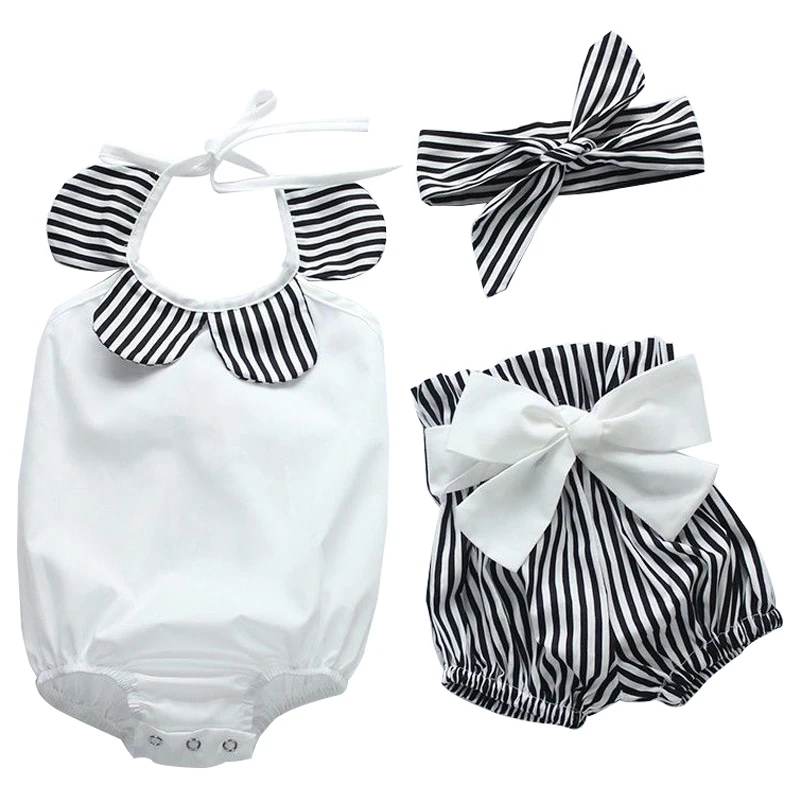 Newborn Baby Girl Bodysuit Romper Tops+Striped Shorts Bottoms Outfits Sunsuit