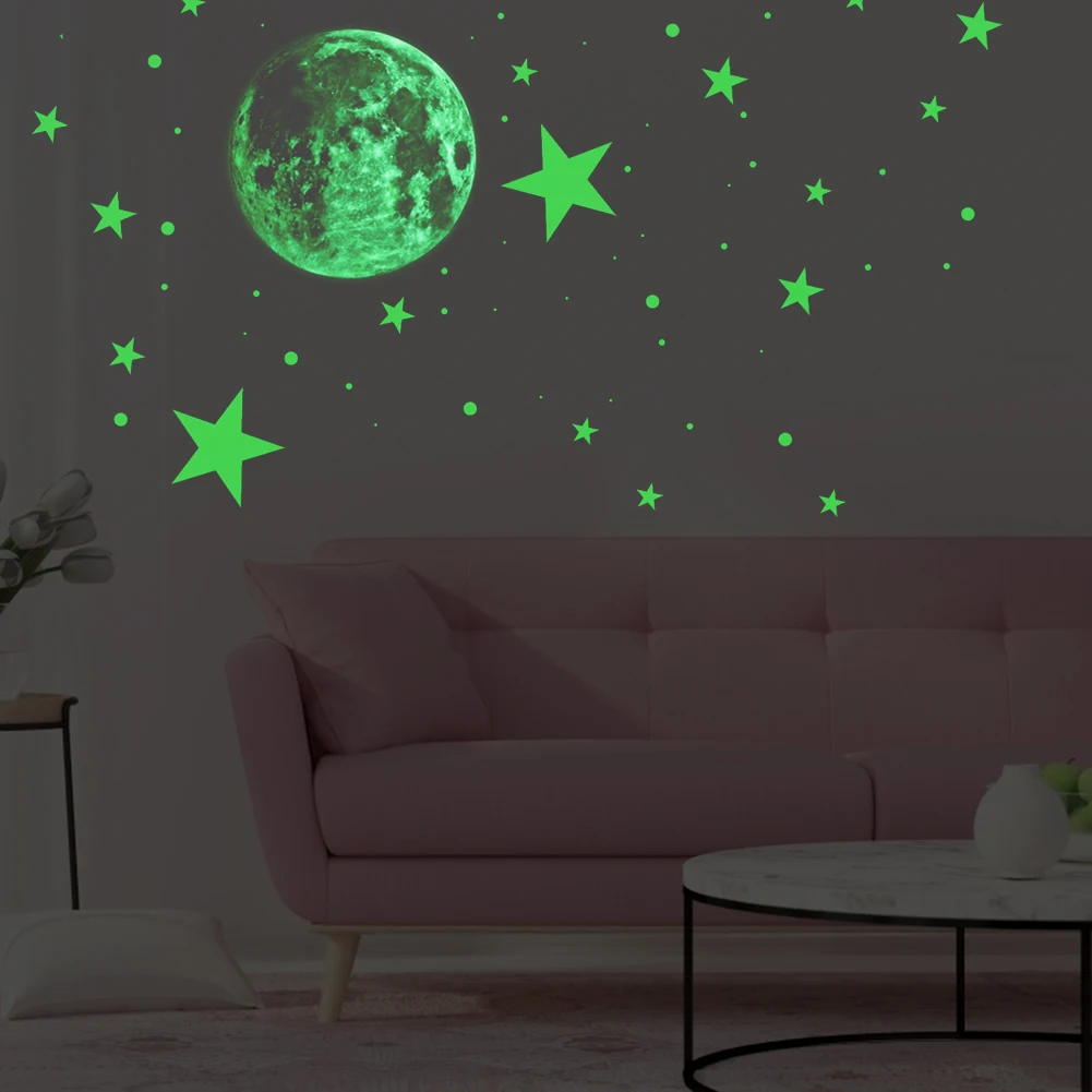 435pcs Luminous Stickers 300x300mm Moon Star Dots Wall Bedroom Living Art Decal Kids Baby Room Home