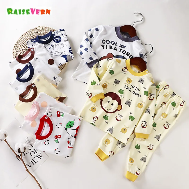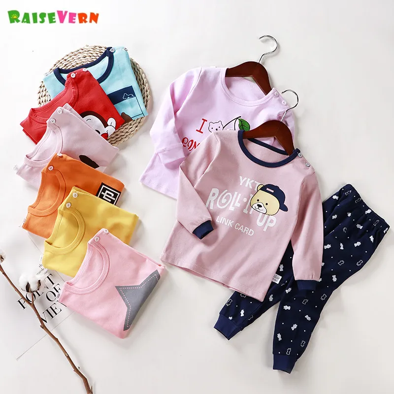HIGH QUALITY 2pcs/set Cute Toddler Cotton Baby Girl Pajamas Set Soft Kid's Ribbed Fitted Pajamas Set Spring Clot