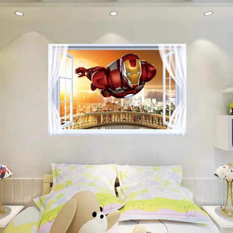 DIY Gift 3D Iron Man Window Wall Stickers Decal Mural Avengers Hulk Thor Kids Nursery Baby Decor B3