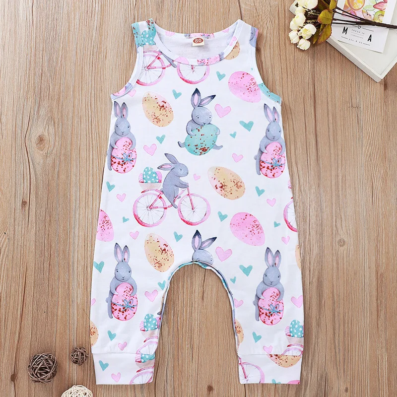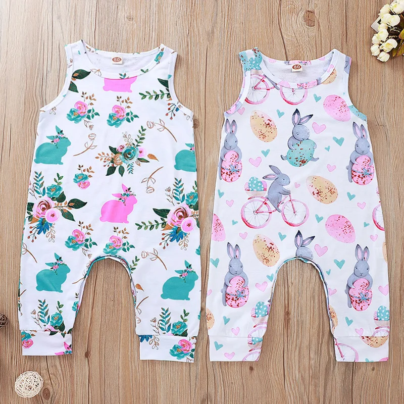 Cute Newborn Floral Romper Baby Girls Bunny Flowers Sleeveless Jumpsuit Easter Outfit Clothes 6-18