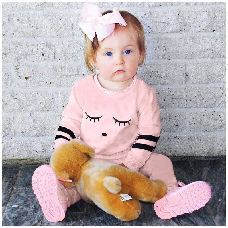 BEST SELLER New Spring and Autumn Baby Girls clothes Suit Two-piece cute Cartoon Top for Infants + Pants Pink 0