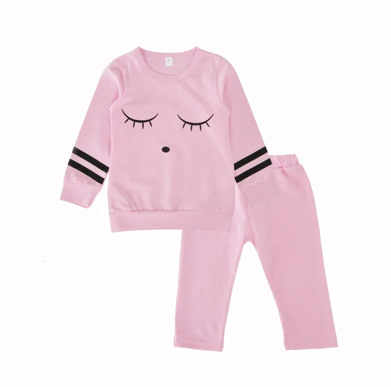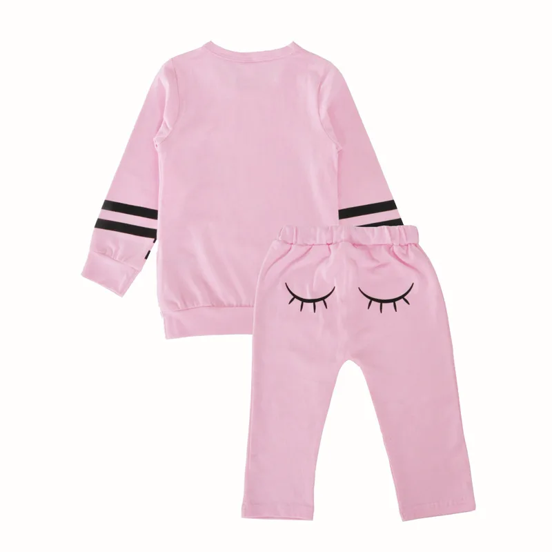 New Spring and Autumn Baby Girls clothes Suit Two-piece cute Cartoon Top for Infants + Pants Pink 0
